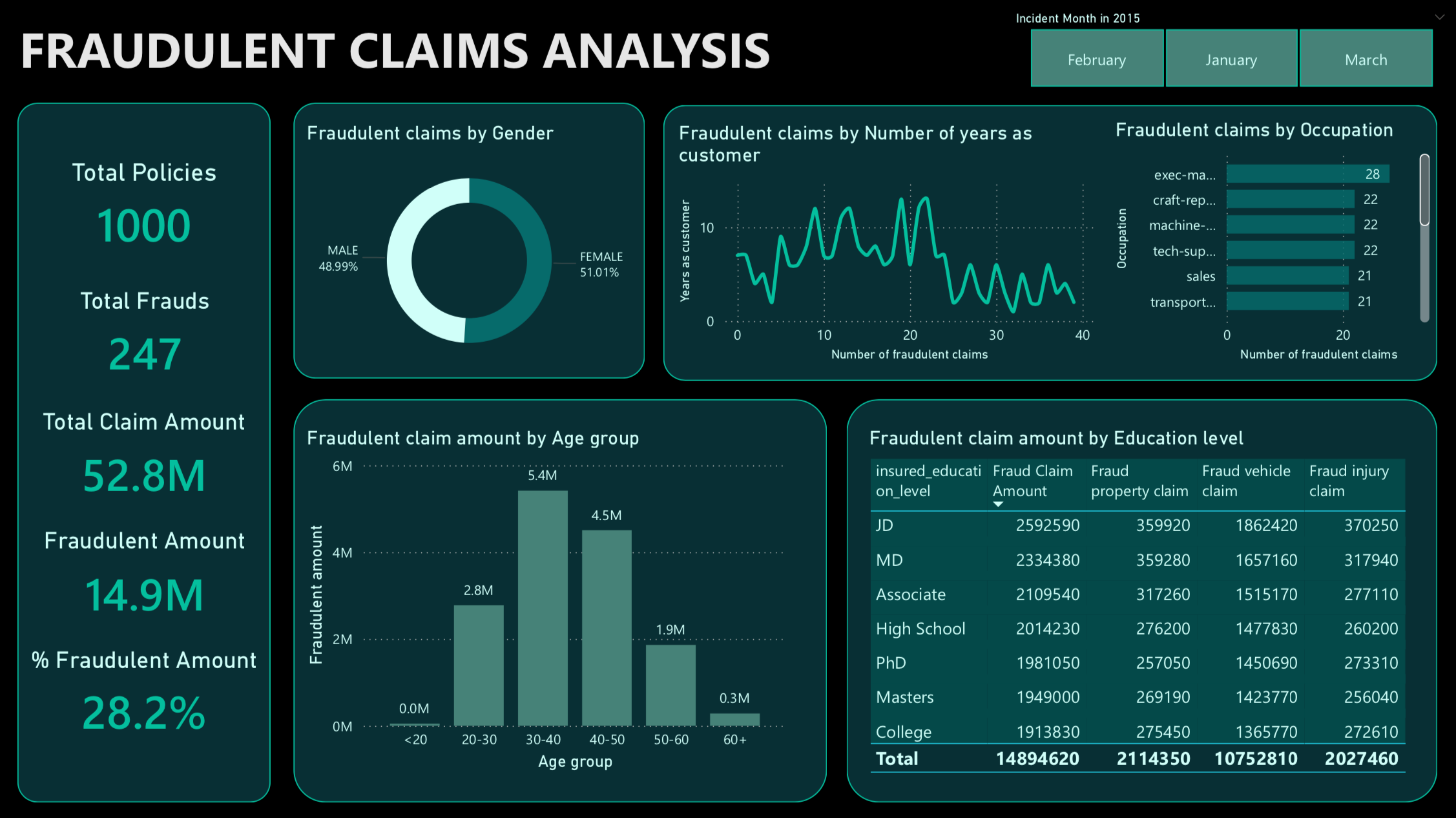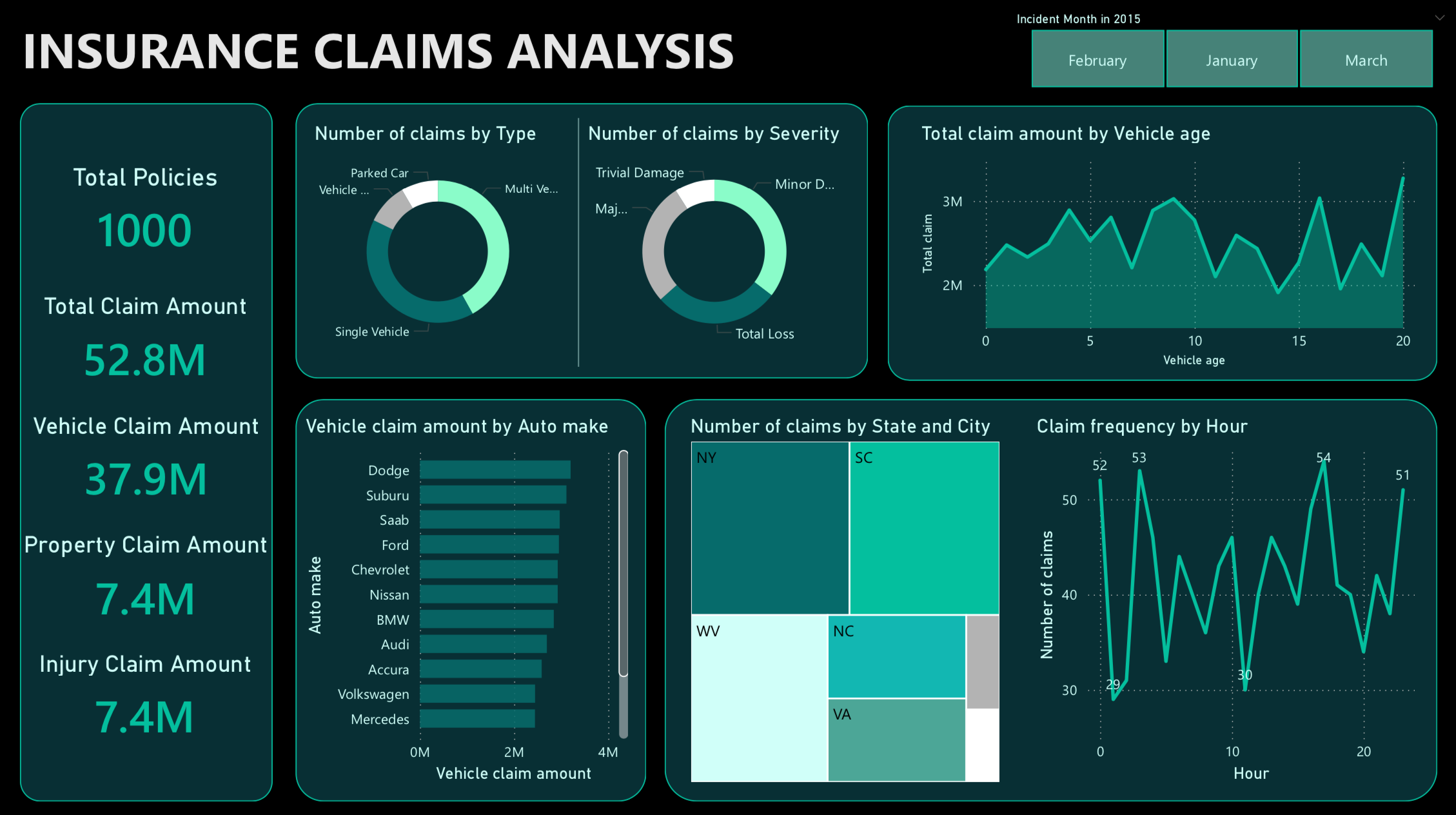 The Insurance Data Analysis Power BI project provides valuable insights into insurance claim data, with a focus on fraud detection and understanding claim characteristics. The dataset used for analysis consists of 1000 individual claims, with 40 different attributes that describe each claim, categorized into four main categories: the insured person, their policy details, incident description, and characteristics of the involved car.