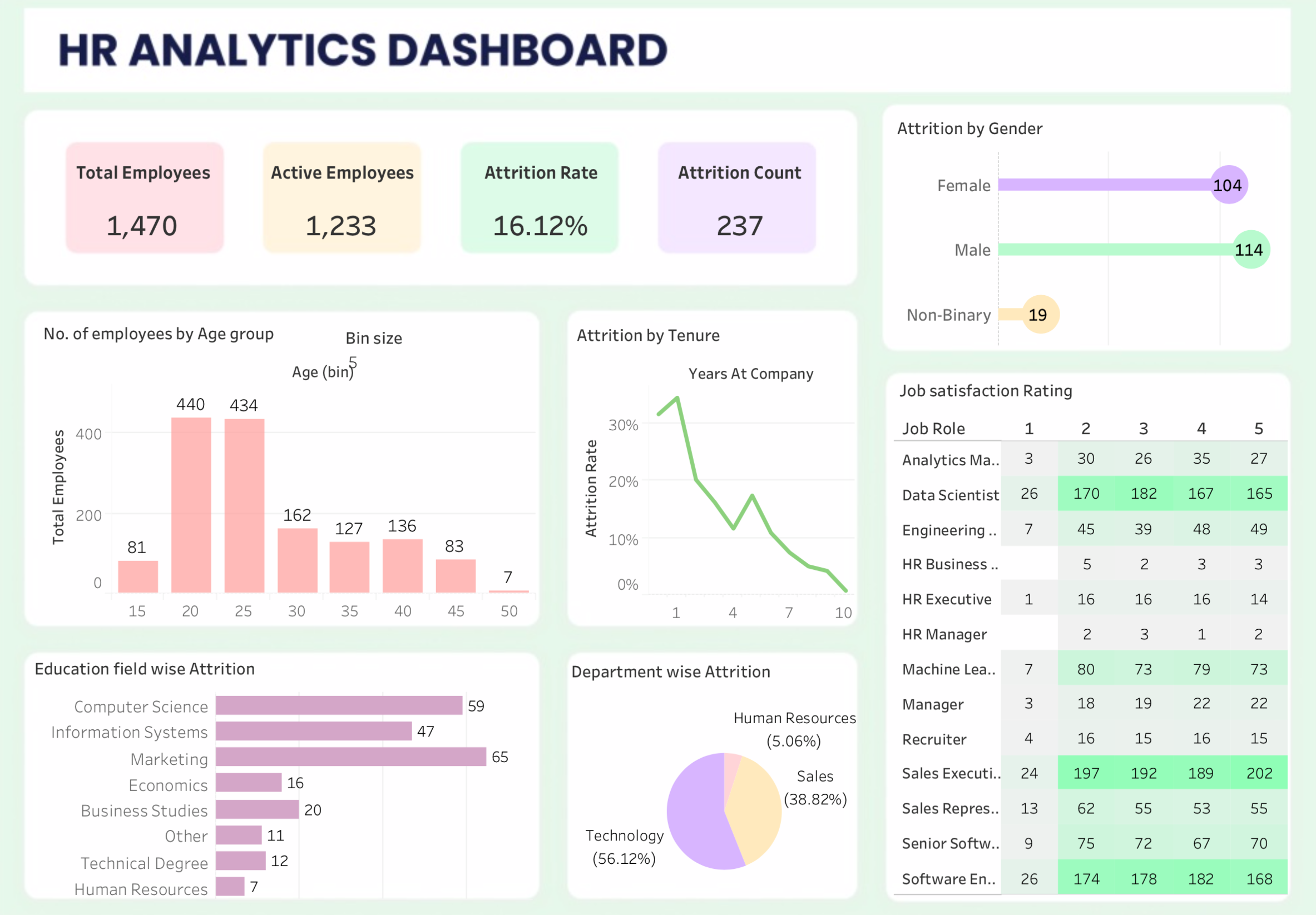 This dashboard provides a comprehensive overview of employee data using fictitious datasets from a Tech company called Atlas Labs. The core goal is to monitor key metrics on employees, and the secondary goal is to understand what factors impact employee attrition.